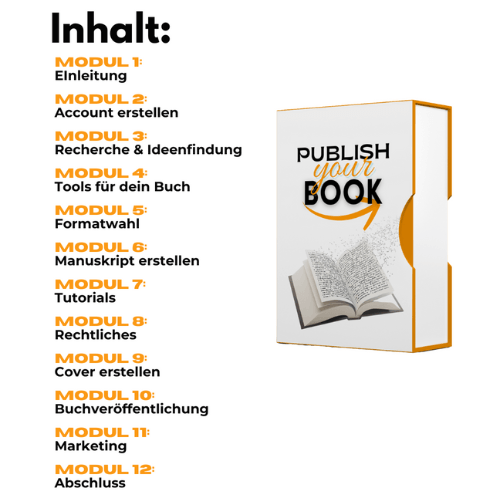 Mit Publish Your Book lernst du Schritt für Schritt, wie du dein Buch, Journal oder Kinderbuch veröffentlichst – ganz ohne Verlag, Lager oder Druckkosten. Du brauchst keine Erfahrung, kein großes Budget – nur deine Idee und den Mut, sie in die Welt zu bringen.