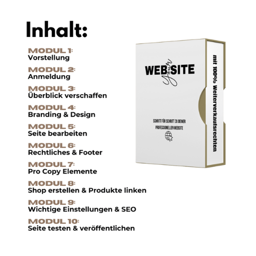 Mit WebYourSite erstellst du Schritt für Schritt deinen professionellen, SEO-optimierten Online-Auftritt. Kein Technik-Frust, kein endloses Rumprobieren – nur klare Anleitungen, mit denen deine Seite nicht nur gut aussieht, sondern Besucher in Kunden verwandelt.